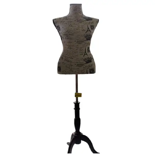 Torso Maniquí de Mujer Estampado Con Pedestal de Madera ,torso firme, resistente a caídas, cubierto de Tela con Diseños Estampados. Ideal para confeccionar ropa o Para realzar la belleza de las piezas que desees.