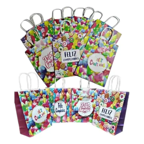 Haz que la fiesta sea aún más divertida con estas adorables bolsas de regalo Perfectas para cumpleaños, estas bolsitas capturan la energía colorida y alegre del momento.
