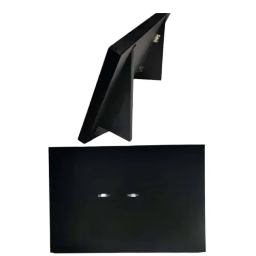 Elegante Exhibidor con acabado Terciopelado en color negro, ideal para decorar espacios del hogar u joyería. Su diseño incluye un soporte plegable en la parte trasera que permite colocarlo tanto en posición horizontal como vertical sobre mesas, repisas o escritorios. para 50 Anillos.