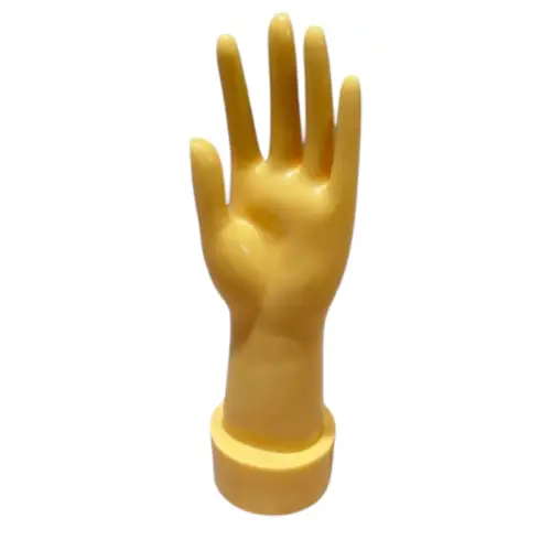 Soporte en forma de mano 27cm, ideal para exhibir anillos, pulseras o brazaletes de manera elegante y llamativa. Fabricada en material resistente con acabado brillante, perfecta para uso en vitrinas, tiendas de accesorios o como decoración en el hogar. Aporta un toque moderno y sofisticado a cualquier espacio.