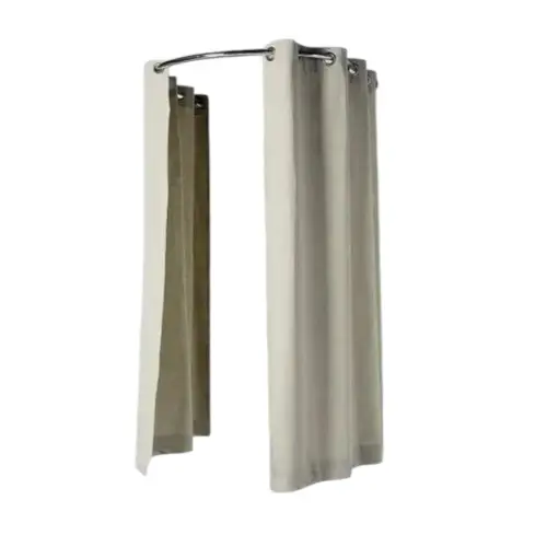 Esta Barra presenta una forma de arco con dos extremos rectos que terminan en soportes de montaje. Estos soportes permiten fijarla a una pared o superficie.Se utiliza para colgar cortinas en espacios donde se requiere una cobertura en forma de “U”, como en probadores de tiendas de ropa o en duchas con diseño de esquina.