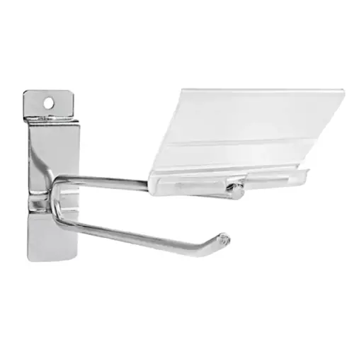 Este gancho doble es una solución eficiente y práctica para exhibir productos en tiendas y comercios, especialmente aquellos en empaques tipo blister. Ideal para paneles ranurados, este gancho no solo permite una exhibición organizada de los productos, sino que también facilita la visualización del precio o información promocional gracias a su portaprecio integrado.